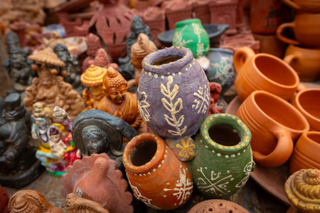 Indian hand made clay pots art and various religious symbols made from it