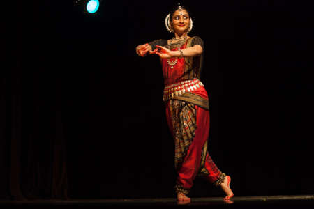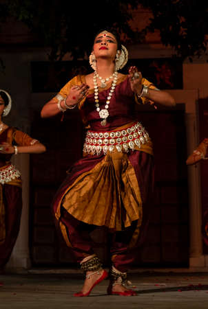 CHENNAI, INDIA - SEPTEMBER 28, 2009: Bharata Natyam dance performed by female exponent Bharatanatyam is a classical Indian dance form originating in Tamil Nadu state