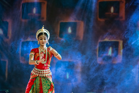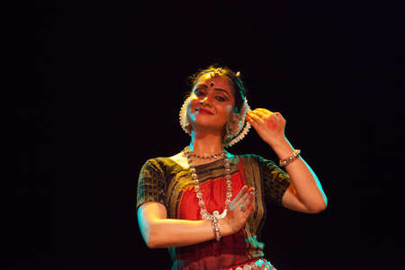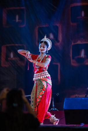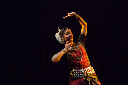 KUALA LUMPUR, MALAYSIA - SEPTEMBER 21, 2022: Dancer performing Indian classical Odissi dance.