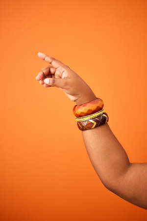 close up shot bharatanatyam dancer hands showing Avahittha hasta form or hand gesture - concept of classical dance, traditional art and bharatanatyam mudra.