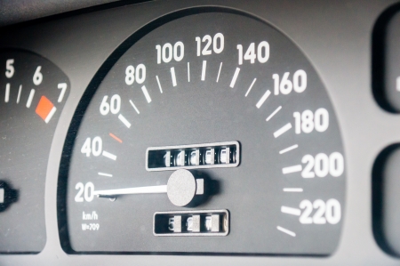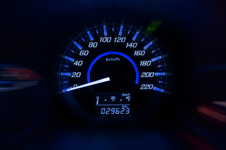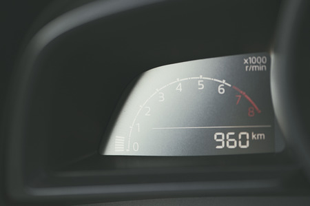 closeup speedometer with red number on the dashboard