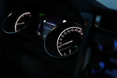 Close up of a speedometer in a modern car, shallow depth of field