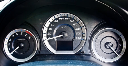 Close up image of a modern car speedometer