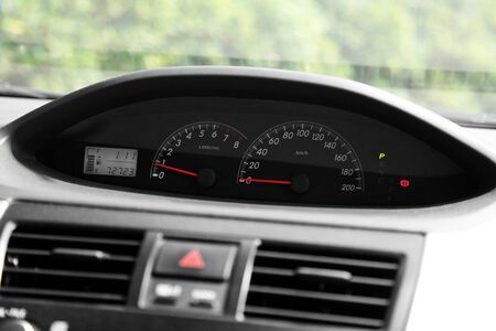 interior elements of the car speedometer on the dashboard