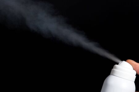 spray deodorant spraying on black background