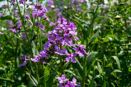 Mattiola flowers blooming in the garden. Beautiful natural floral background.