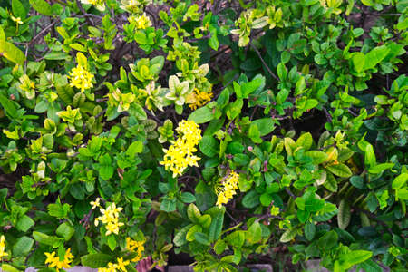 Yellow flower spike Rubiaceae in a garden flower