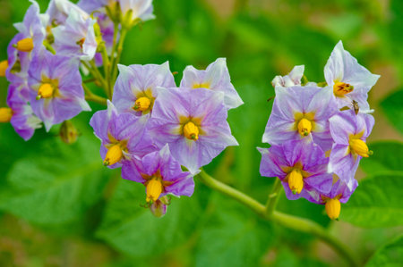 Capture the delicate beauty of potato flowers up close Exploring the intricate details of the petals and stamens of potato flowers Macro photography reveals the hidden world of potato flowers