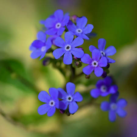 blue blossoming flowers on a background green grass