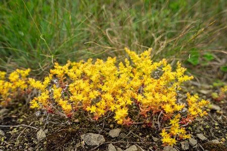 Sedum acre blossom in nature. Close-up.