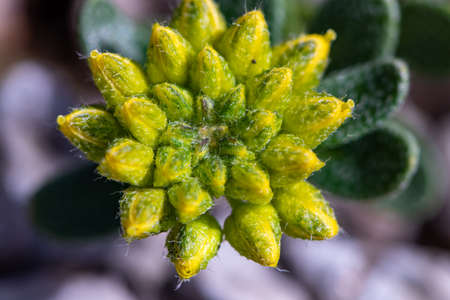Close up of Echeveria sempervirens, small yellow flowers