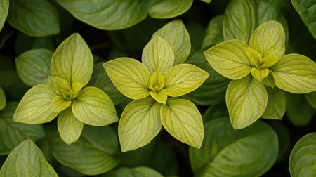 Close-up view of fresh green leaves thriving in a lush garden during a sunny afternoon