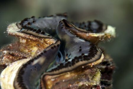 A large bivalve (Tridacna crocea) opened its flaps and displayed its beautiful mantle.