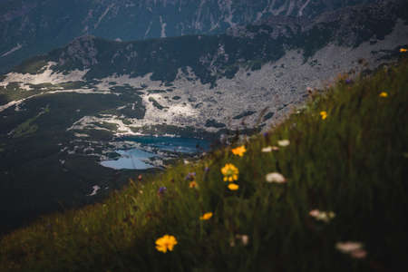 Mountain lake picturesque scenery. High rocks. Beautiful landscape. Slovakia, Tatry.