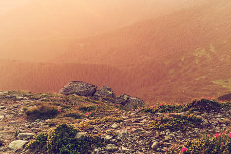 Mysterious landscape the dense fog falling on the mighty Tatras Mountains in Slovakia. Beauty and strength of wild untouched nature. Ideal background for fairy tales illustrations and collages.