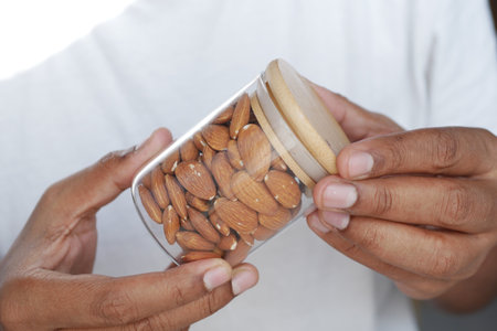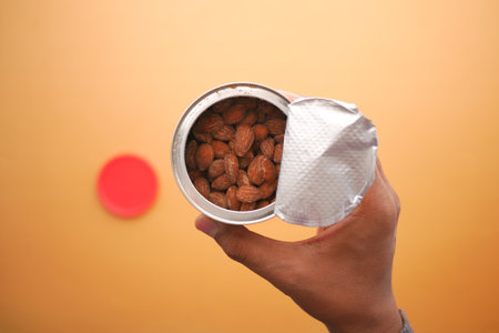holding a almond nut tin container