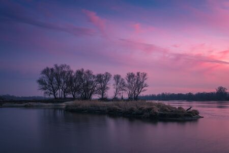 Dusk over the island on the Vistula river near Otwock, Poland