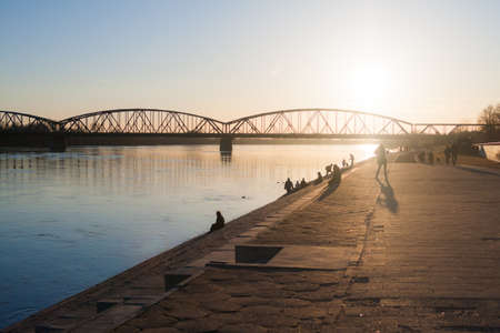 Sunset over Visla river in Warsaw, Poland
