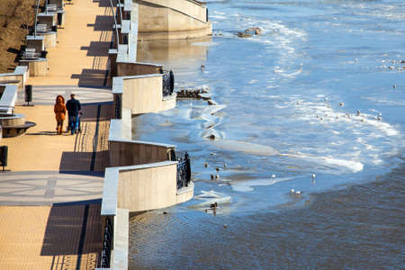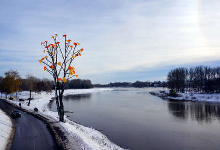 The river Svislach and ice skating rink in the distance in Minsk, Belarus