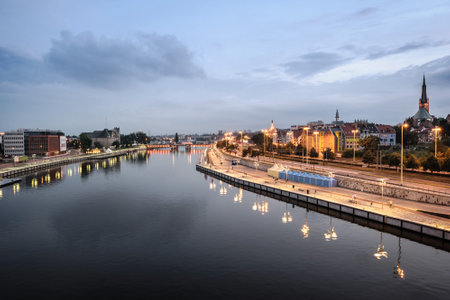 Szczecin River and Cityscape at Twilight