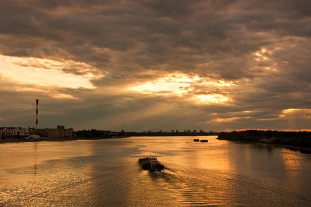 Sunset over the Volga river in the Samara region, Russia