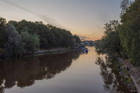beautiful sunset over the odra river in wroclaw in poland