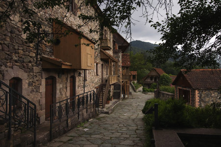 Old Sharambeyan Street with wooden building in Dilijan, Armenia