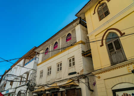 STONE TOWN, TANZANIA - December 22, 2021: Narrow streets and old houses in Stone town, Zanzibar, Tanzania.