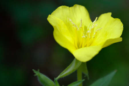 Common evening primrose ( Oenothera biennis ) flowers. Onagraceae perennial weed. Four-petaled yellow flowers bloom from June to September.