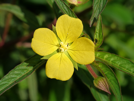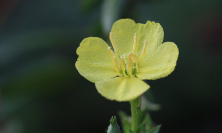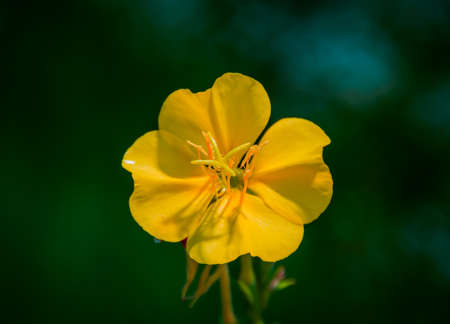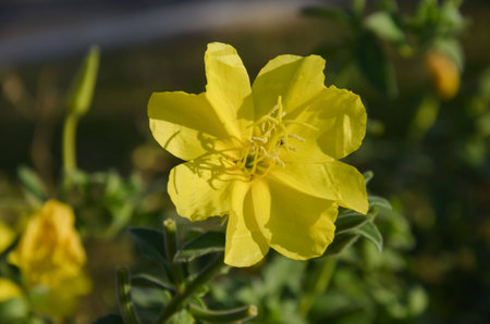 Yellow flower of an evening primrose (Oenothera) Close-up of a flower in bloom in summer. Colorful, bright and bee-friendly in the gardens and fields of Bavaria.