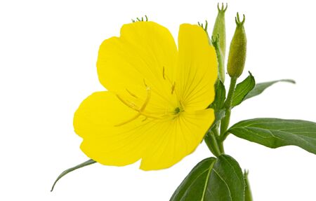 Flower of yellow Evening Primrose, lat. Oenothera, isolated on white background