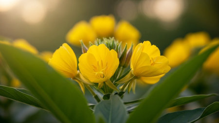 Common Evening Primrose Flower Beautifully Bloomed. Created by Generative AI Technology.
