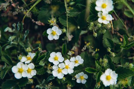 Strawberry flowers authentic blurred background