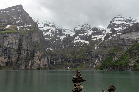 The Oeschinen mountain lake ot Oeschinensee in Kandersteg, Switzerland