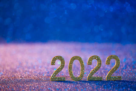 New Year 2022 Celebration - golden numbers on blue and bokeh background
