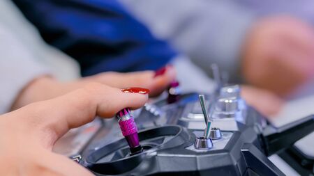 Remote Control Drone Hobby Leisure Entertainment Technology Innovation Concept. installation of the joystick