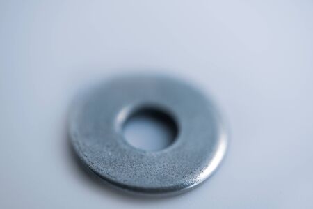 Repair tool. Bolts and metal mounting plates. White background. Copy space.