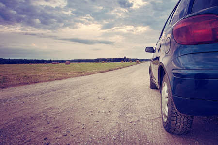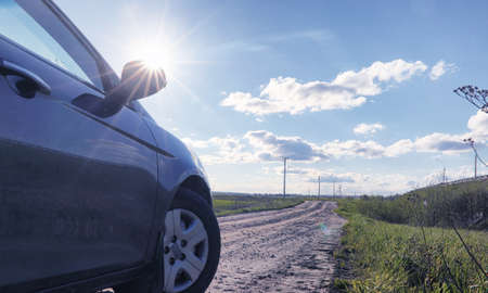 Car in the summer on gravel road