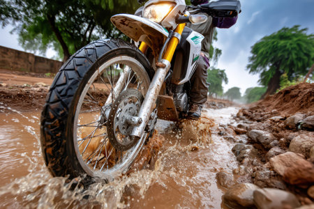 Dynamic close-up of rugged motorcycle tire tread. High quality photo
