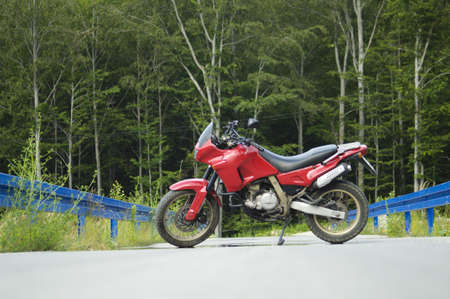 Red enduro motorcycle on the road