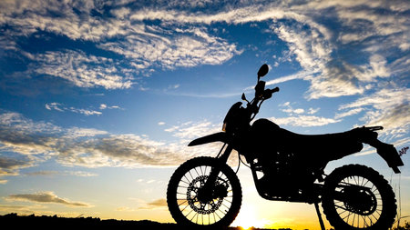 Silhouette of a dirt bike or motocross in the evening. travel and adventure concept