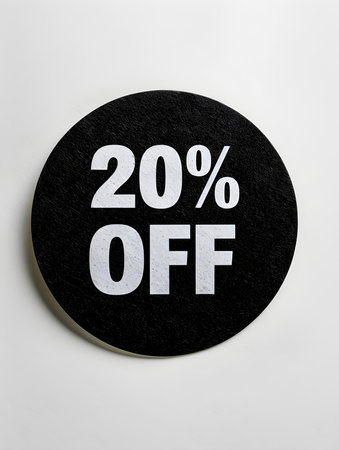 White '20% OFF' Promotional Sign on a Light Brown Background