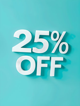 White '25% OFF' Promotional Sign on a Cyan Background