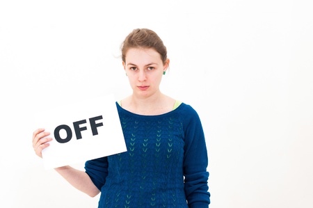 portrait young woman with board OFF