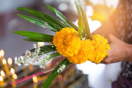 Loy Krathong festival, People buy flowers and candle to light and float on water to celebrate the Loy Krathong festival in Thailand