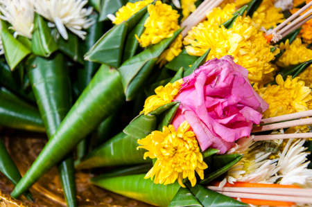 Flowers and tobacco Arrange to put together to bring the holy. beautiful, set,