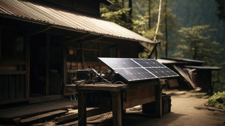 The roof of a modern house with eco-friendly solar panels in harmony with nature, ecology, saving natural resources, alternative energy source. AI Generated