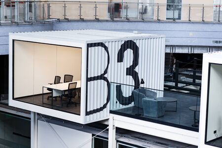 HELSINKI, FINLAND - JANUARY 05, 2020: Helsinki Central Library Oodi and living meeting place with range of services in modern design in city center. Interior inside building with glass windows, wooden facade