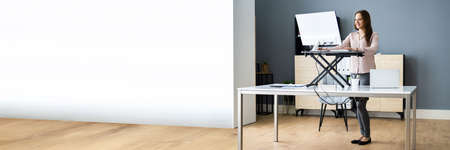 Adjustable Height Desk Stand In Office Using Computer