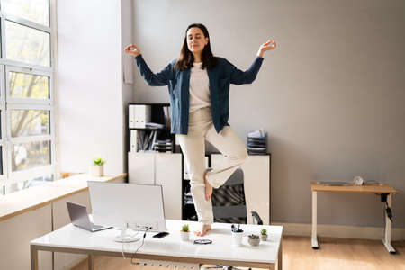 Exercise Stretch At Work Business Desk In Office